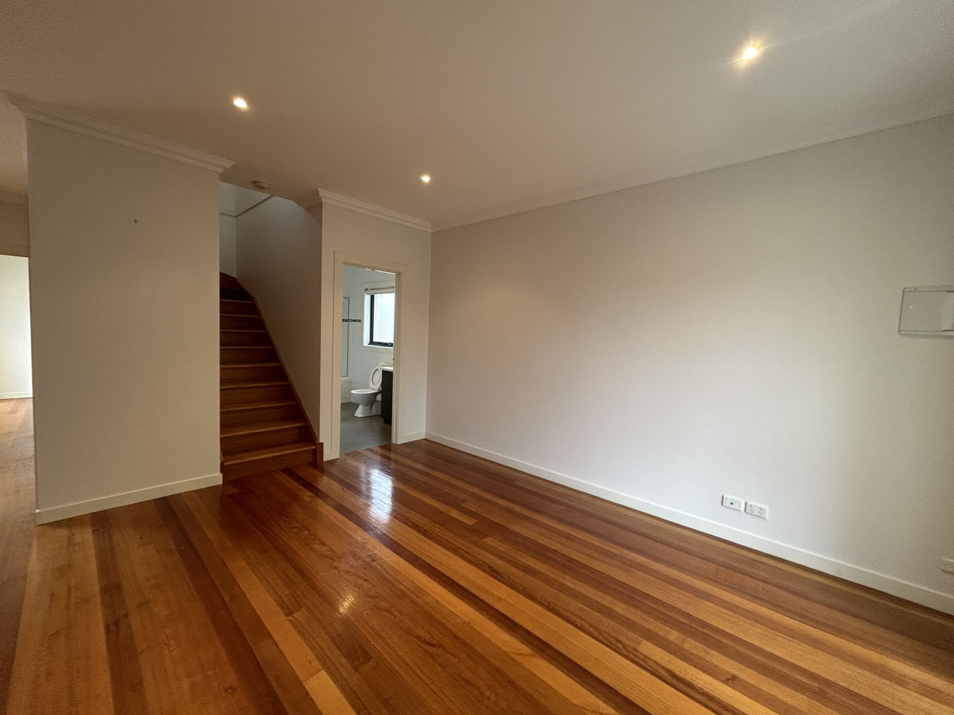> Large open lounge with polished floorboards