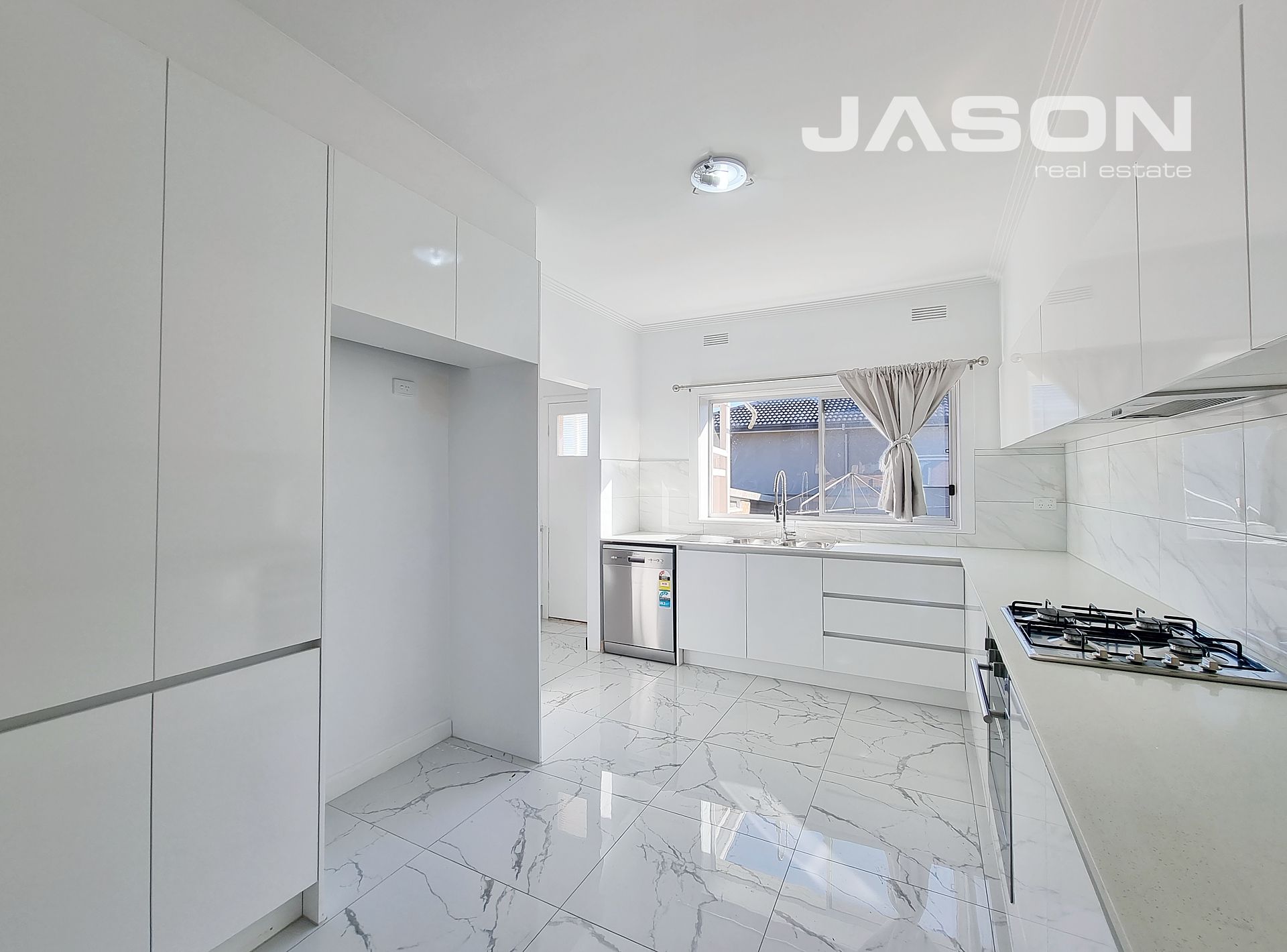 - Modern kitchen with Caesar benchtop, with dishwasher and gas appliances