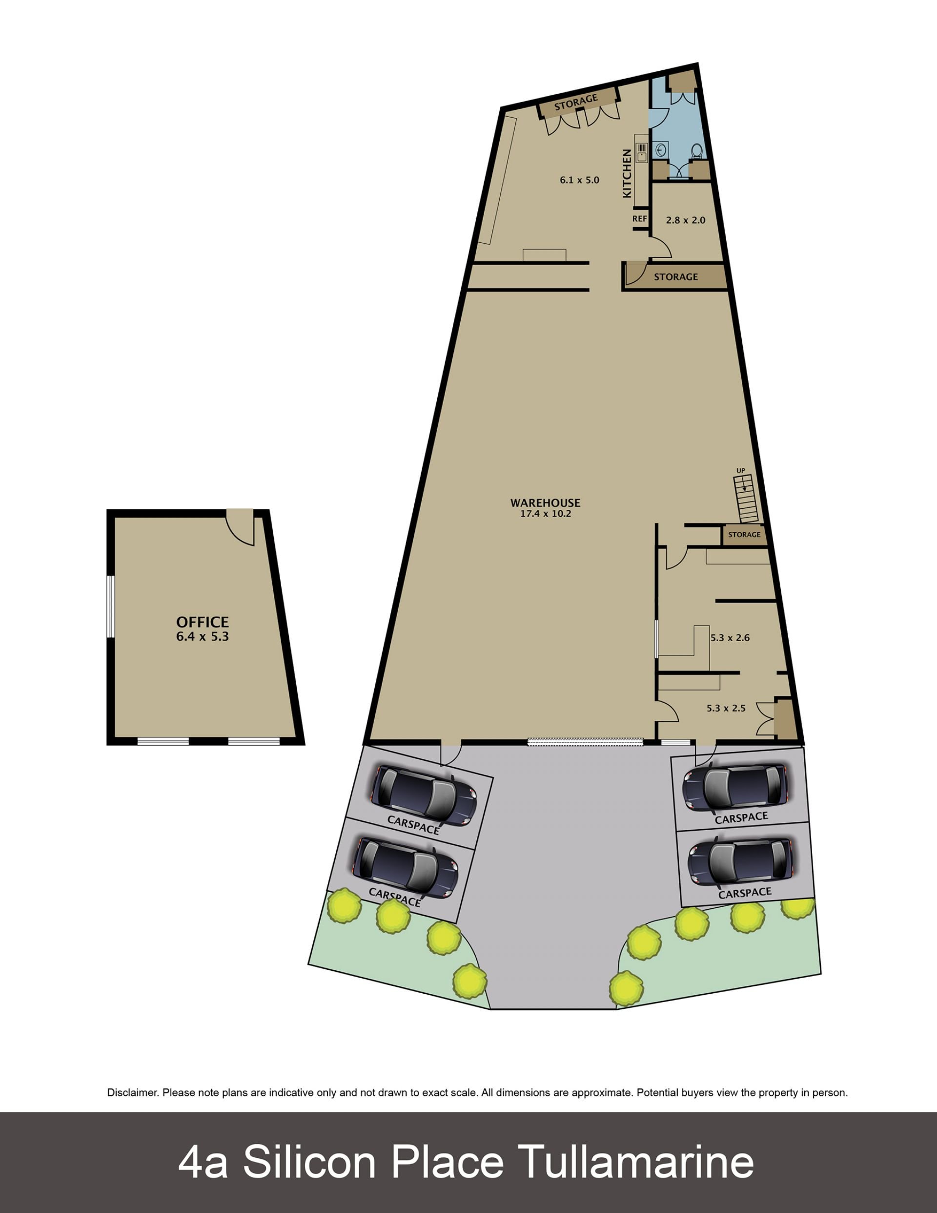 * Includes: Ground floor warehouse area, multiple offices, container height roller door, kitchenette and restroom amenities