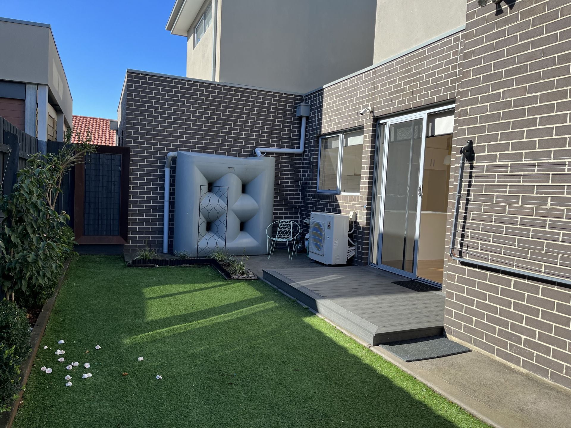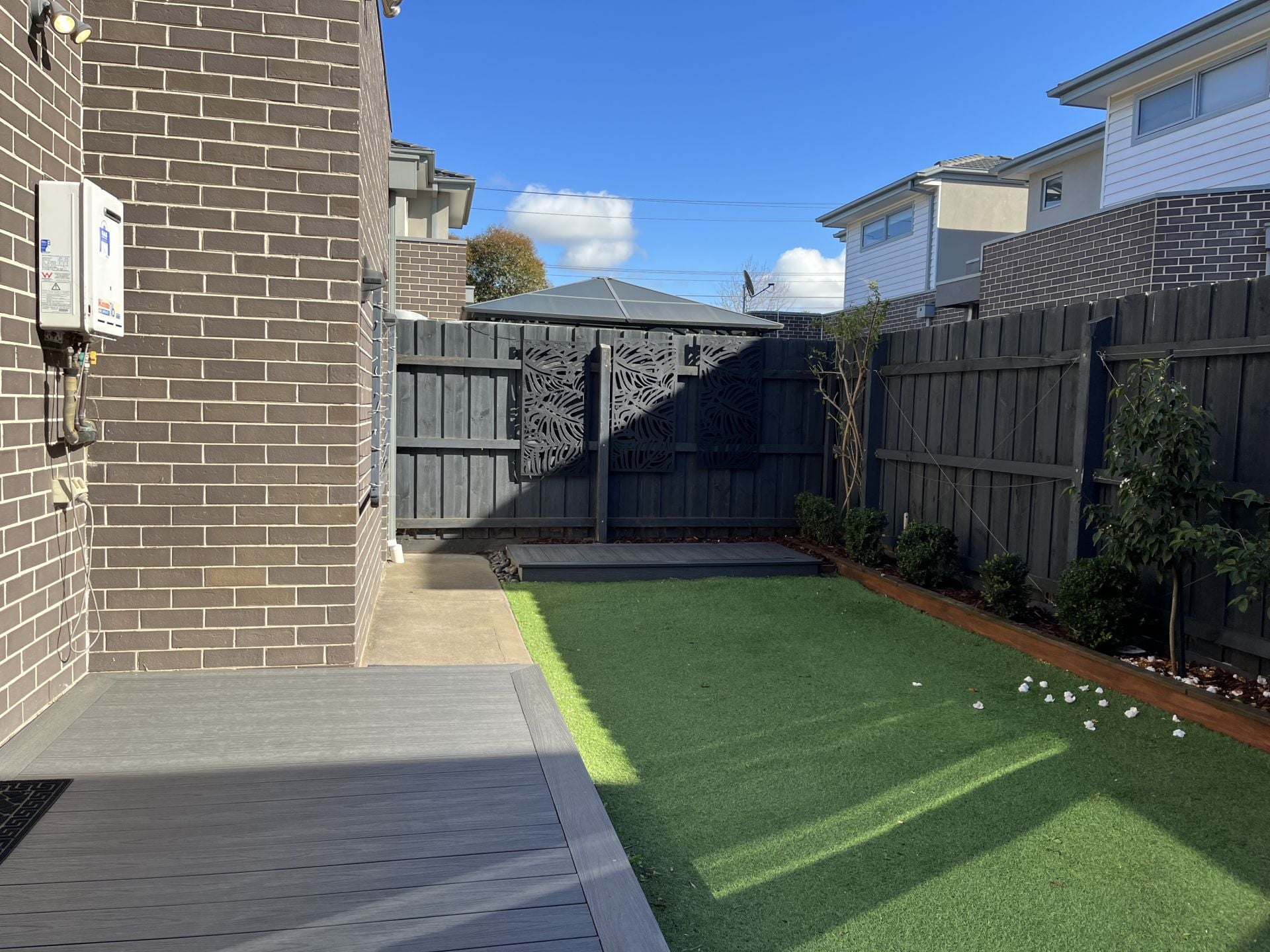 > easy to maintain courtyard with brand new decking for entertaining