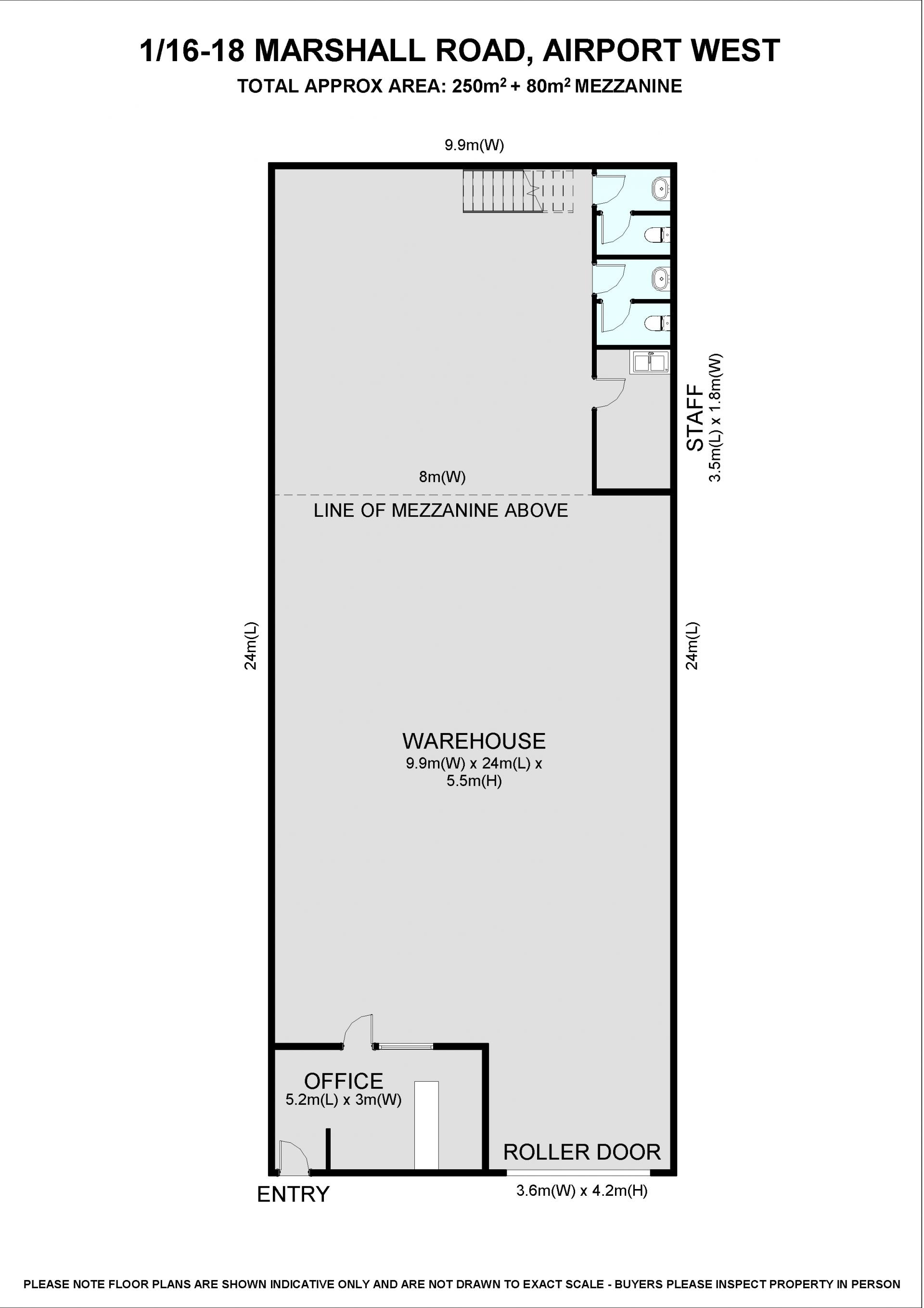 * Building Area: 250sqm (approx), plus 80sqm mezzanine
