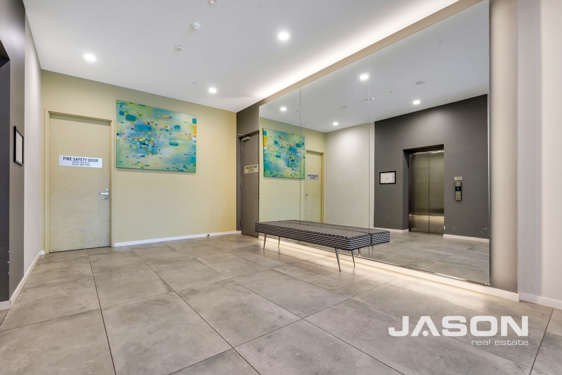 Two well-appointed bedrooms come with built-in robes and electric heaters, while a central bathroom complements the modern design. Additional features include secure entry with elevator access, a basement car space, a storage cage, and bicycle storage. The building also offers keyless entry, video/audio intercom, and a gymnasium on the ground floor.