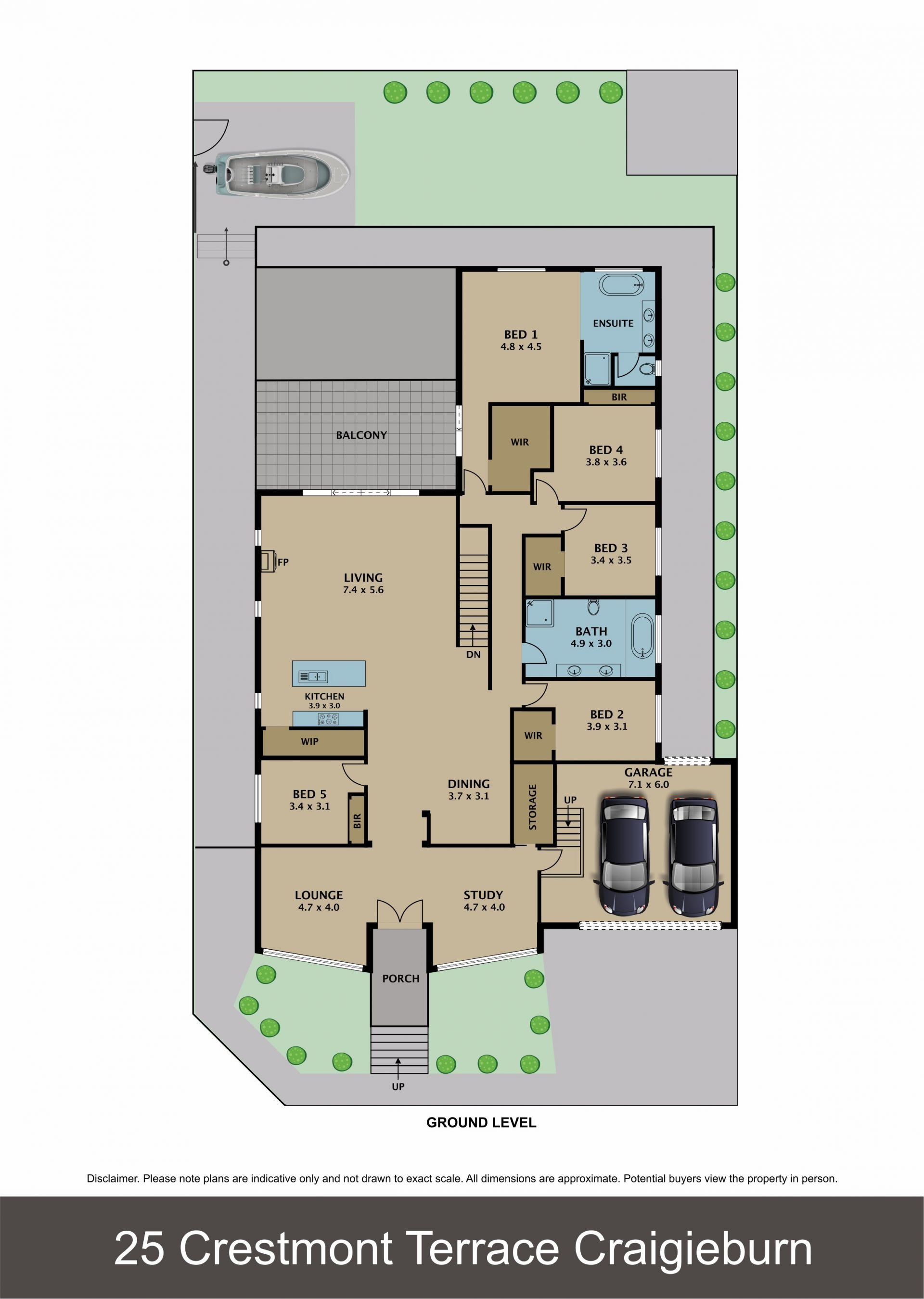 Ground floor offering a grand entry leading to the formal lounge room and study room, large ultra-modern kitchen with cathedral ceilings overlooking to the dining room and living area with access to the huge balcony, a total of 5 bedrooms (main bedroom overlooking Melbourne CBD, luxurious ensuite and custom-built WIR) and modern central bathroom.
