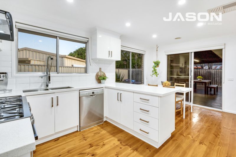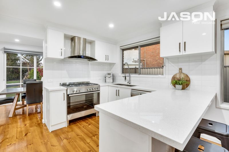 Hardwood timber flooring, a contemporary interior, and full-length picture windows that let in lots of natural light make this home stylish and comfortable. Modern families will appreciate the updated and well-appointed kitchen with a gourmet 900mm gas stove and oven, rangehood and dishwasher. The beautiful stone benchtops provide plenty of space for food prep, and the breakfast bar is great for the kids on busy weekdays.