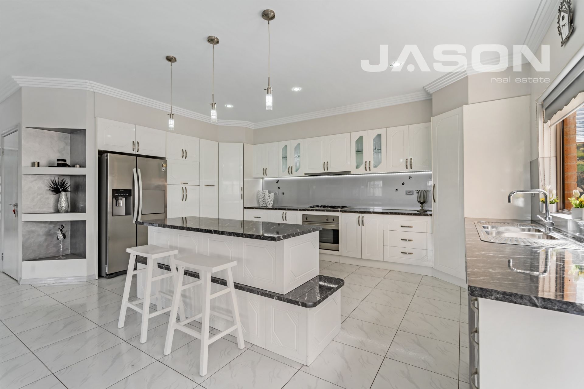 Features: ducted heating, ducted refrigerated cooling, solar 5KW, water tank, intercom, alarm system, CCTV cameras, vacuum system, spa bath, 900mm appliances, dishwasher, rangehood, light fittings, window furnishings and high ceilings.