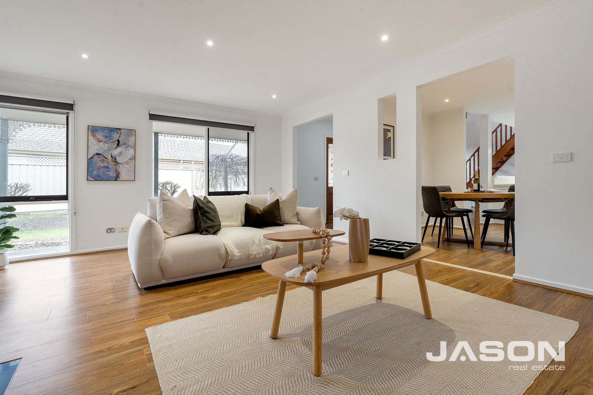 Upon entry, you're greeted by beautiful timber floorboards that flow throughout the home with split system heating / cooling for year-round comfort. Two spacious living areas provide excellent zones for entertaining, relaxing, or giving the kids their own space. The open-plan kitchen is equipped with a dishwasher, oven, ample bench space, and adjoins a cosy dining area, perfect for everyday meals or casual family gatherings.