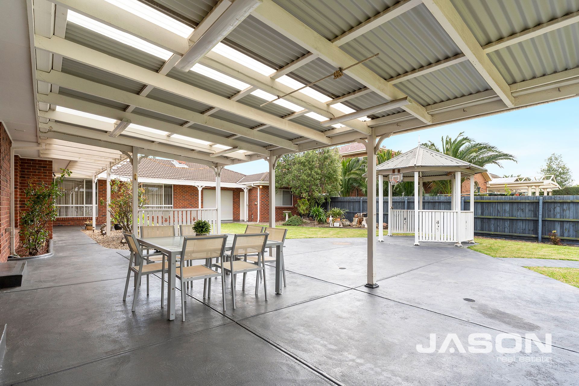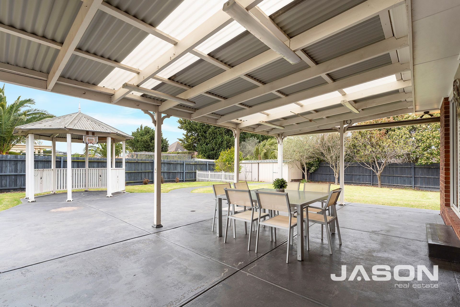 Outdoors, you'll find a generous undercover entertaining area, a charming gazebo, and a workshop alongside the double remote-control garage with drive-through access. The expansive yard offers ample space for children to play and families to enjoy, making it the perfect setting for gatherings of any size.