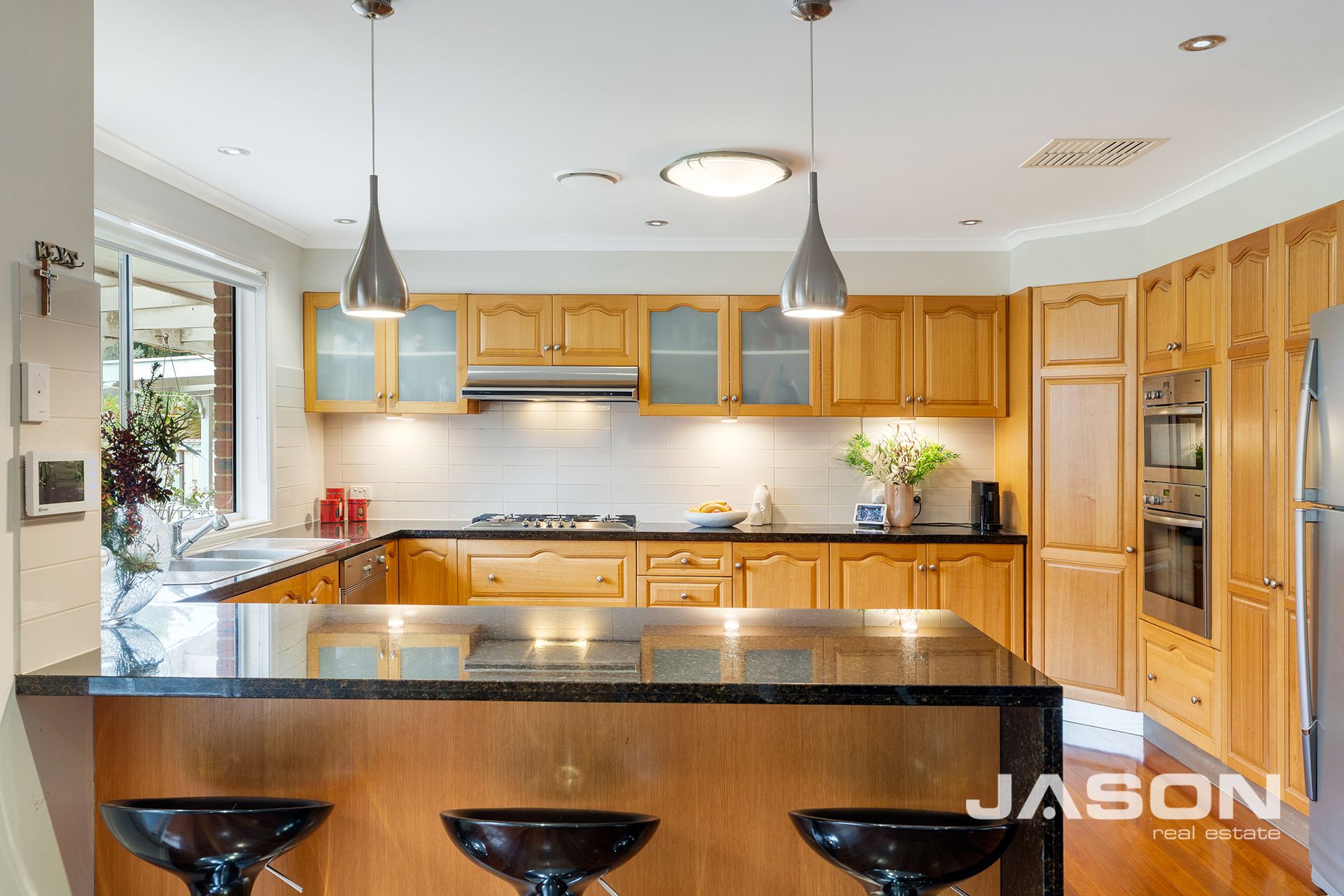 At the heart of the home, the large kitchen is a true standout, fitted with premium Miele appliances including a 900mm gas cooktop, rangehood, wall oven, convection microwave, dishwasher and incinerator. Overlooking the open-plan living spaces, it blends practicality with style and is sure to impress the family chef.