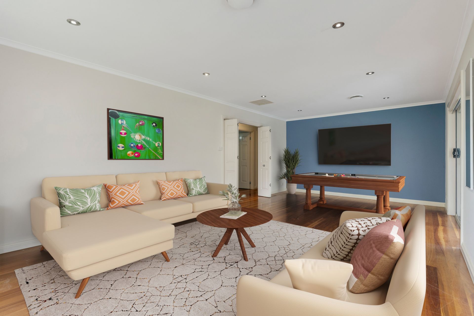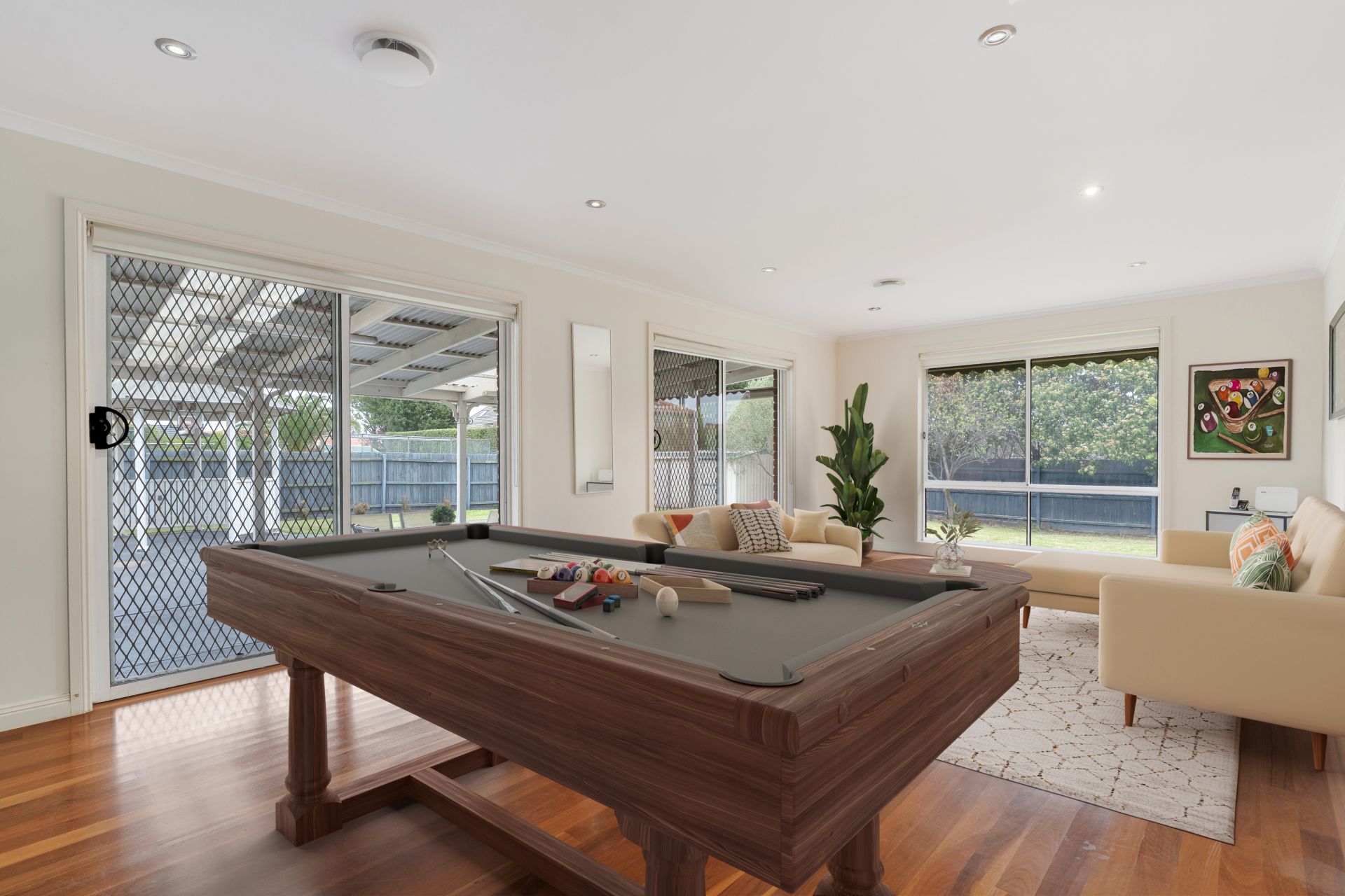 Offering incredible versatility, the home boasts three lounge rooms and two dining areas, including a generous step-down family room with a fireplace that sets the perfect scene for Christmas gatherings. The casual lounge room comes complete with built-in speakers, while the formal spaces provide plenty of room for relaxation and entertaining.
