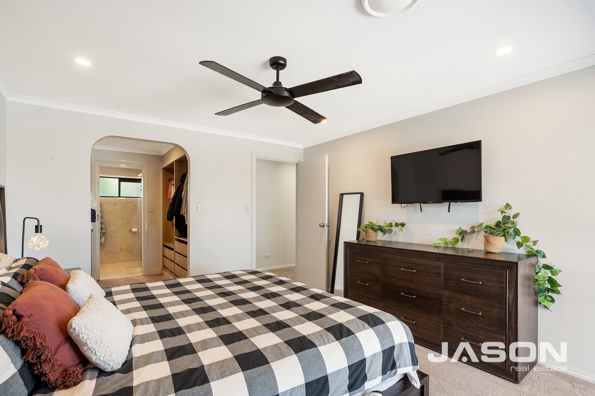 Accommodation includes four well-sized bedrooms, each with built-in wardrobes, while the master suite boasts a walk-in robe, private ensuite, and split-system heating/cooling. Additional features include ducted heating and cooling throughout.