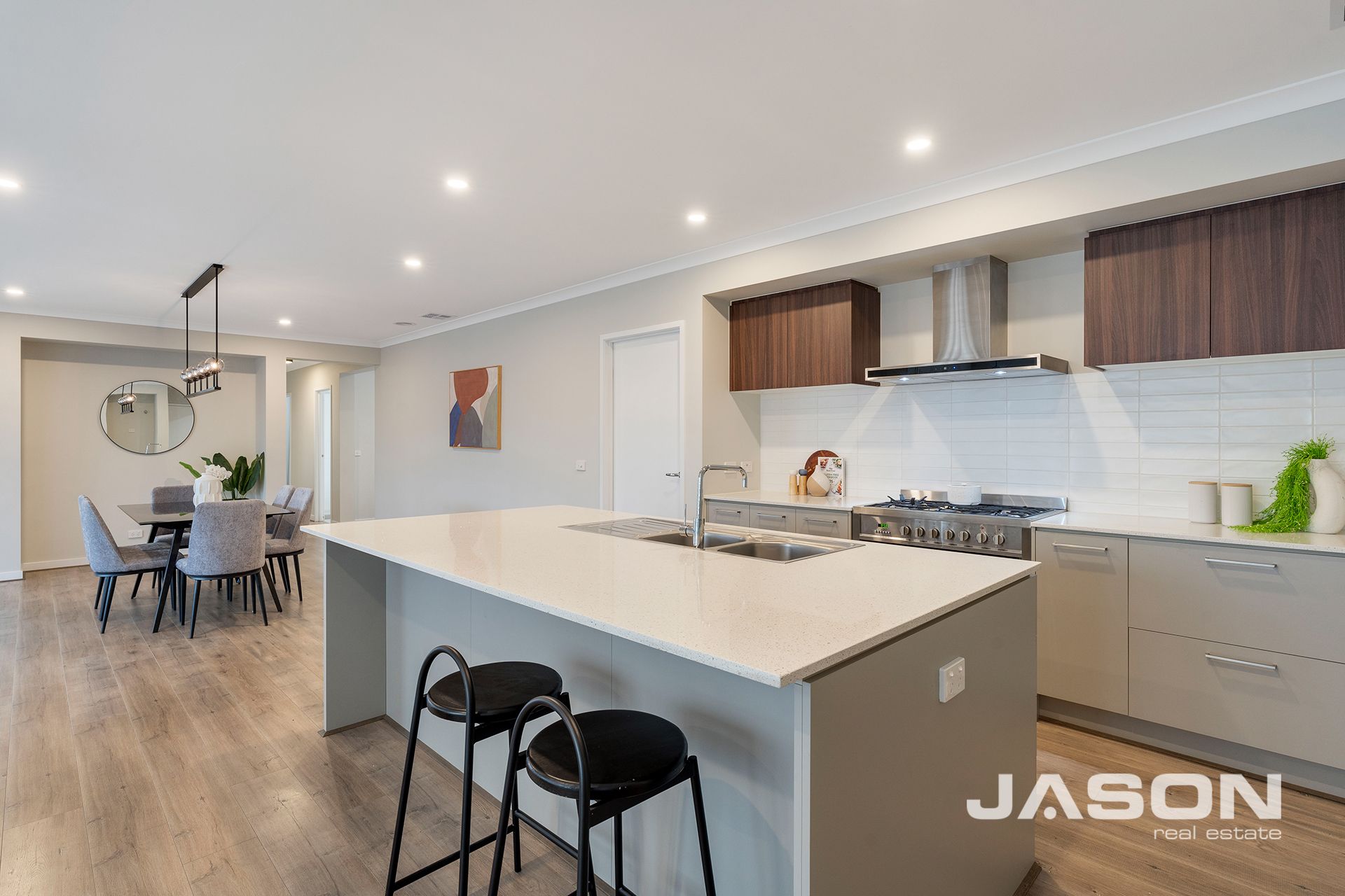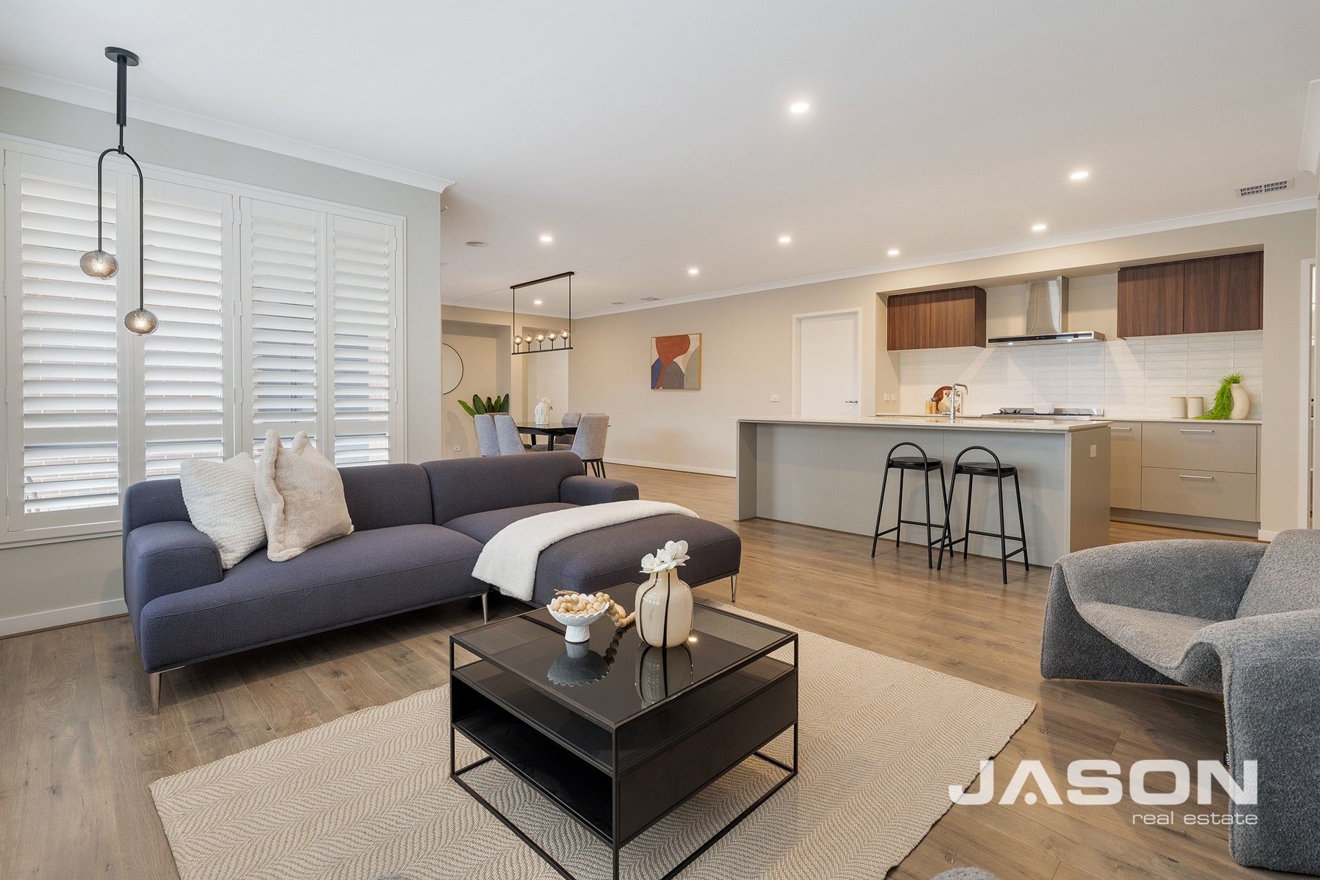 This young and immaculately presented brick veneer, four-bedroom, three-living residence delivers an exceptional family lifestyle defined by space, comfort, and premium upgrades throughout. From the moment you step inside, the home impresses with its striking high ceilings, feature lighting, and plantation shutters adorning every window.
