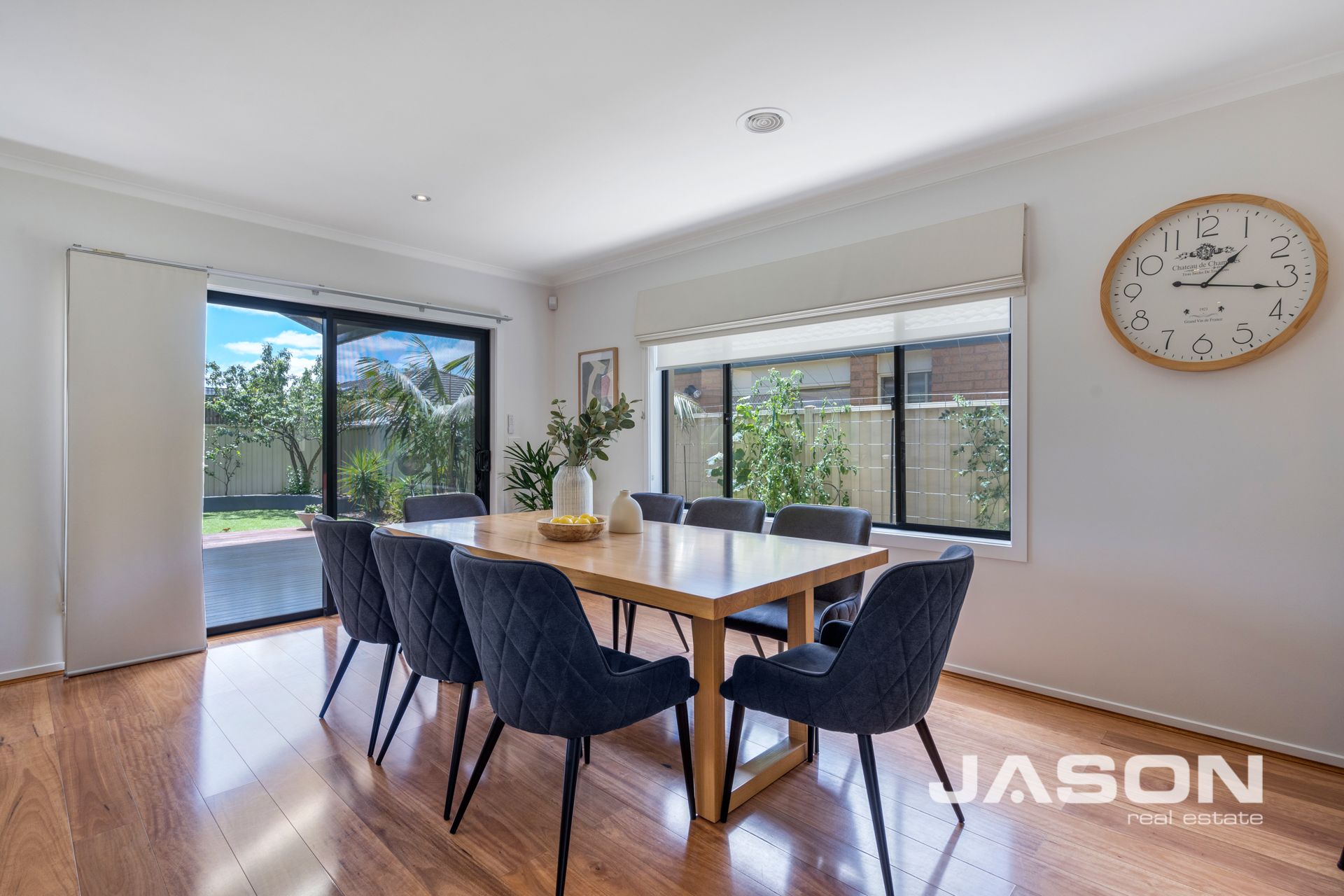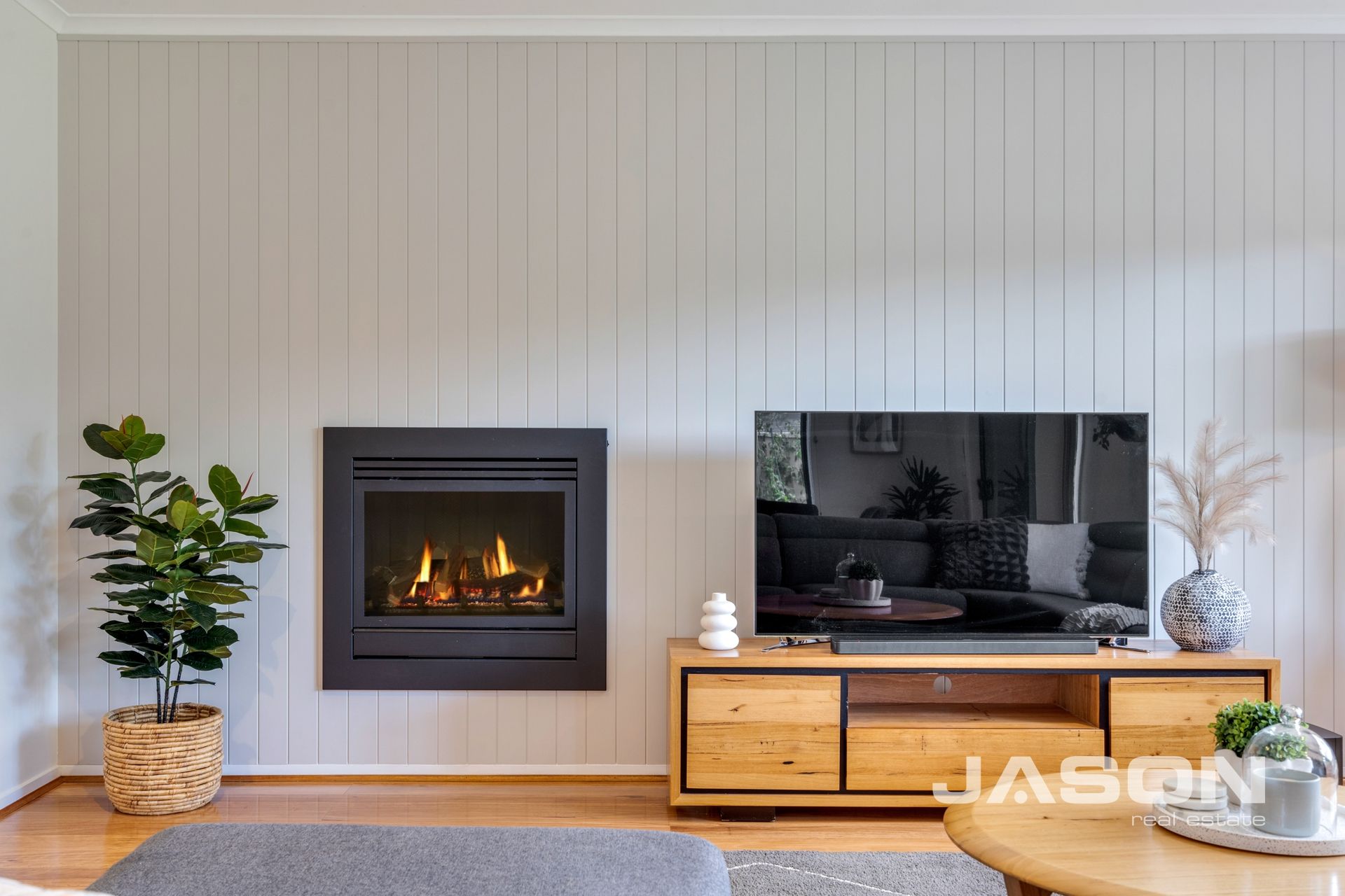 The kitchen itself is a masterpiece of modern design, featuring sleek and abundant cabinetry, top-of-the-line appliances, stone bench tops, walk-in pantry, and a central island that doubles as a breakfast bar. The seamless flow between the kitchen, dining, and living areas enhances the sense of openness and connectivity. Awash with natural light, the large dining and family room features a cosy gas-log fire and modern VJ panelling.