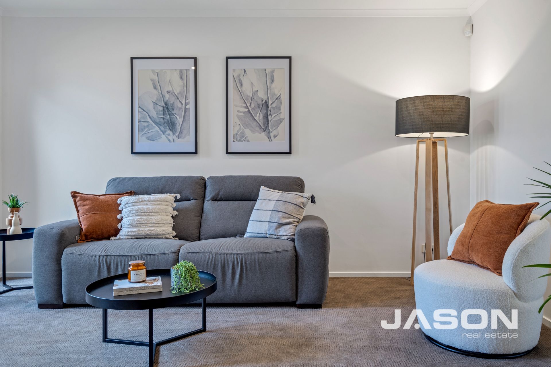 Upon entering, the first of two inviting living areas unfolds before you, revealing a light-filled haven adorned with premium finishes and a neutral colour palette that creates a soothing atmosphere throughout and provides ample space for relaxation and entertainment. Strategically positioned near the entrance, this area offers versatility for use as a formal lounge room, media room, or even a home office. The open living room seamlessly connects to the well-appointed kitchen, forming the heart of the home – an ideal space for entertaining guests or enjoying quality family time.