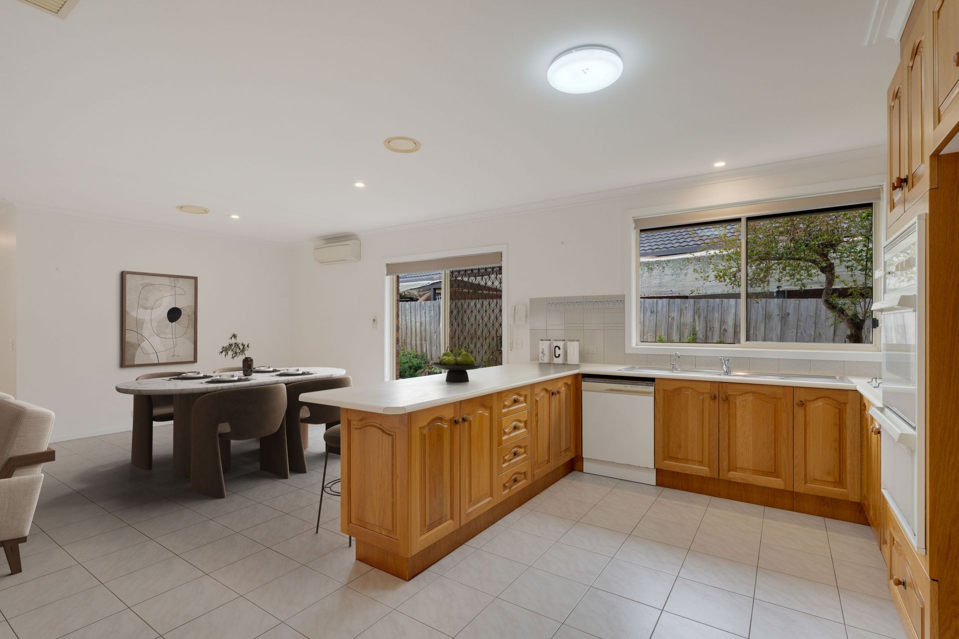 The beautifully appointed timber kitchen is a true chef's haven, featuring ample cupboard space and original appliances, including a 900mm gas cooktop, wall oven, and rangehood.