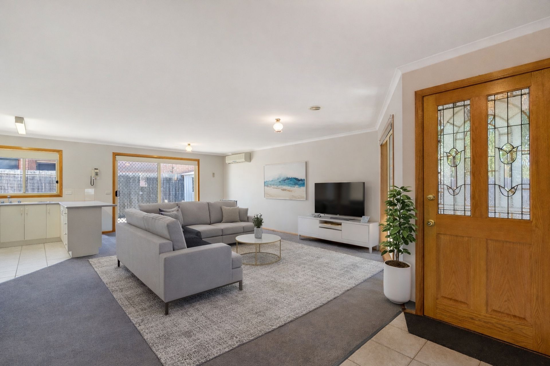 Step inside to a light-filled and welcoming interior featuring a spacious open-plan lounge and dining area, complemented by ducted heating throughout and a split system for year-round comfort. The well-appointed kitchen offers ample cupboard and bench space, ideal for everyday living and entertaining.