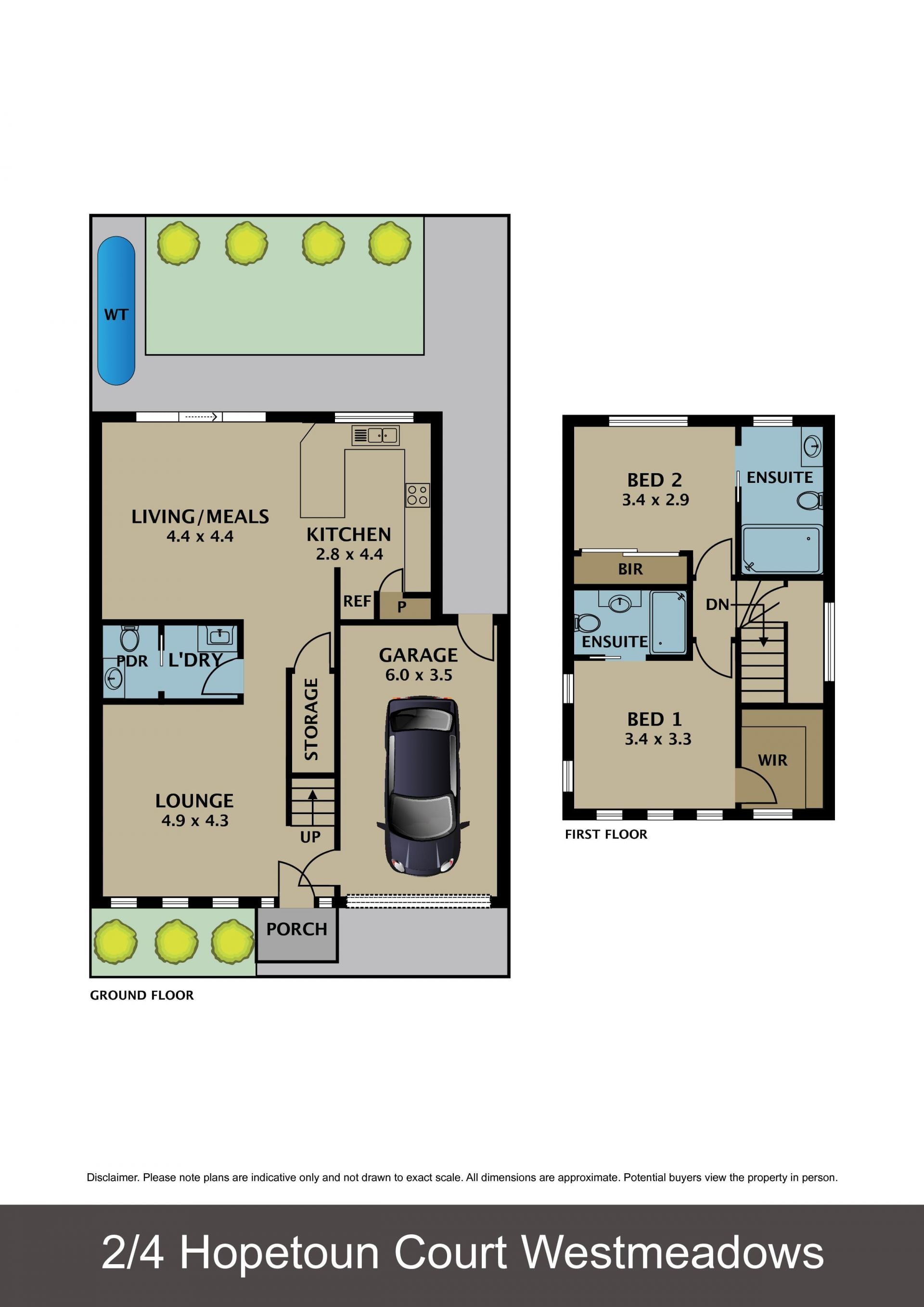 Upstairs, you'll find two generously sized bedrooms, each with built-in robes (BIRs) and their own full ensuites, providing privacy and luxury. A separate laundry, a convenient powder room, and a low-maintenance courtyard add to the home's functionality and appeal.